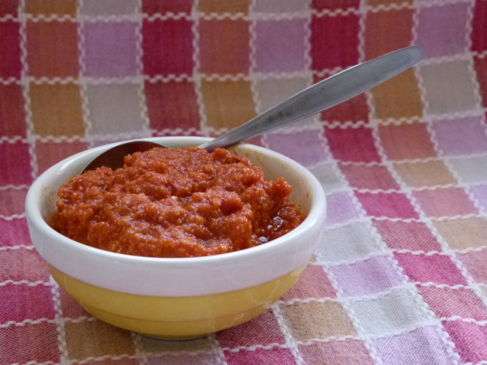 I had no idea before starting my Spanish Omelette about this sauce! What is it? It was time to search the world wide web(AGAIN!!) to find out about this sauce. I found a lot of pictures but when it came to a recipe, I decided to adapt the Romesco sauce from the Taste.com.au website and I made it nut free – perfect if you have allergies!