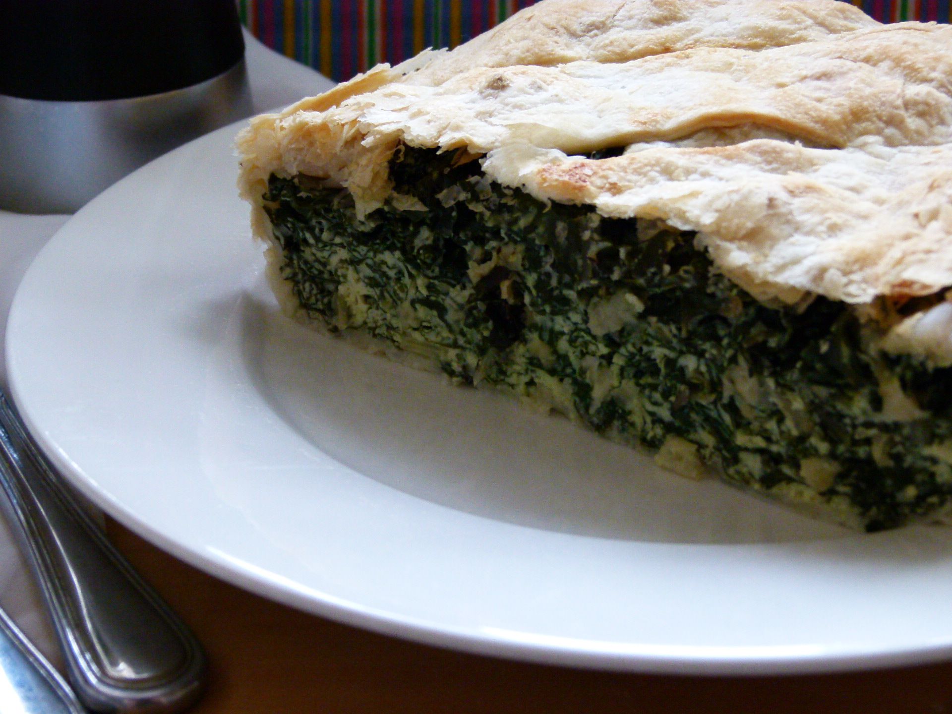 You can make a spanakopita with filo pastry but all I had in the freezer was puff pastry. This pie still had plenty of crunch and puff to it. This was a wonderful adaptation to a traditional spanakopita.