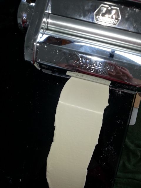 Place the pasta maker on setting one and roll through 3-5 times, flouring in between each rolling.