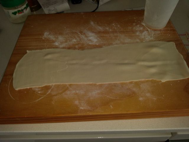 I roll out into a thick roll shape and flour well