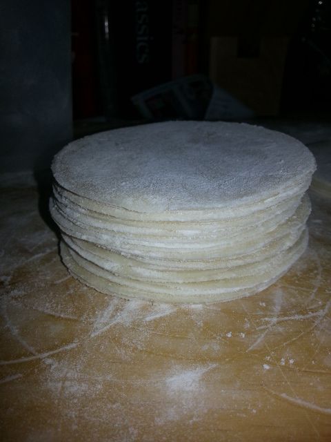 Repeat above process until you’ve used up all the dough and have your 40 wrappers.