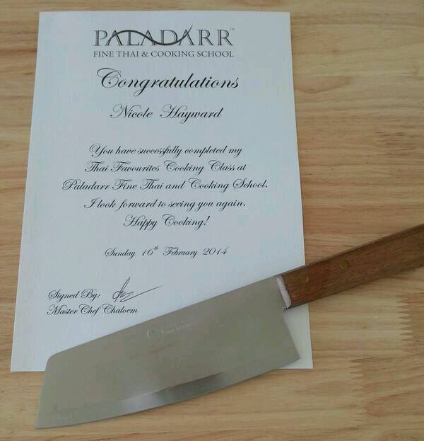 All of us had an amazing time and found Chaloem very easy to understand while being thorough in explaining each recipe in simple terms. We all appreciated this as it would make it easier to replicate these dishes when we got home. Not only did we receive the recipes we had cooked in a lovely presentation folder to take home with us, but a certificate for completing the class and a voucher to use in Paladarr! Then when things couldn’t get any better, we got given one of the knives we used in class to take home with us! We were all so excited and very appreciative (and we couldn’t help but be in awe of these amazing knives).