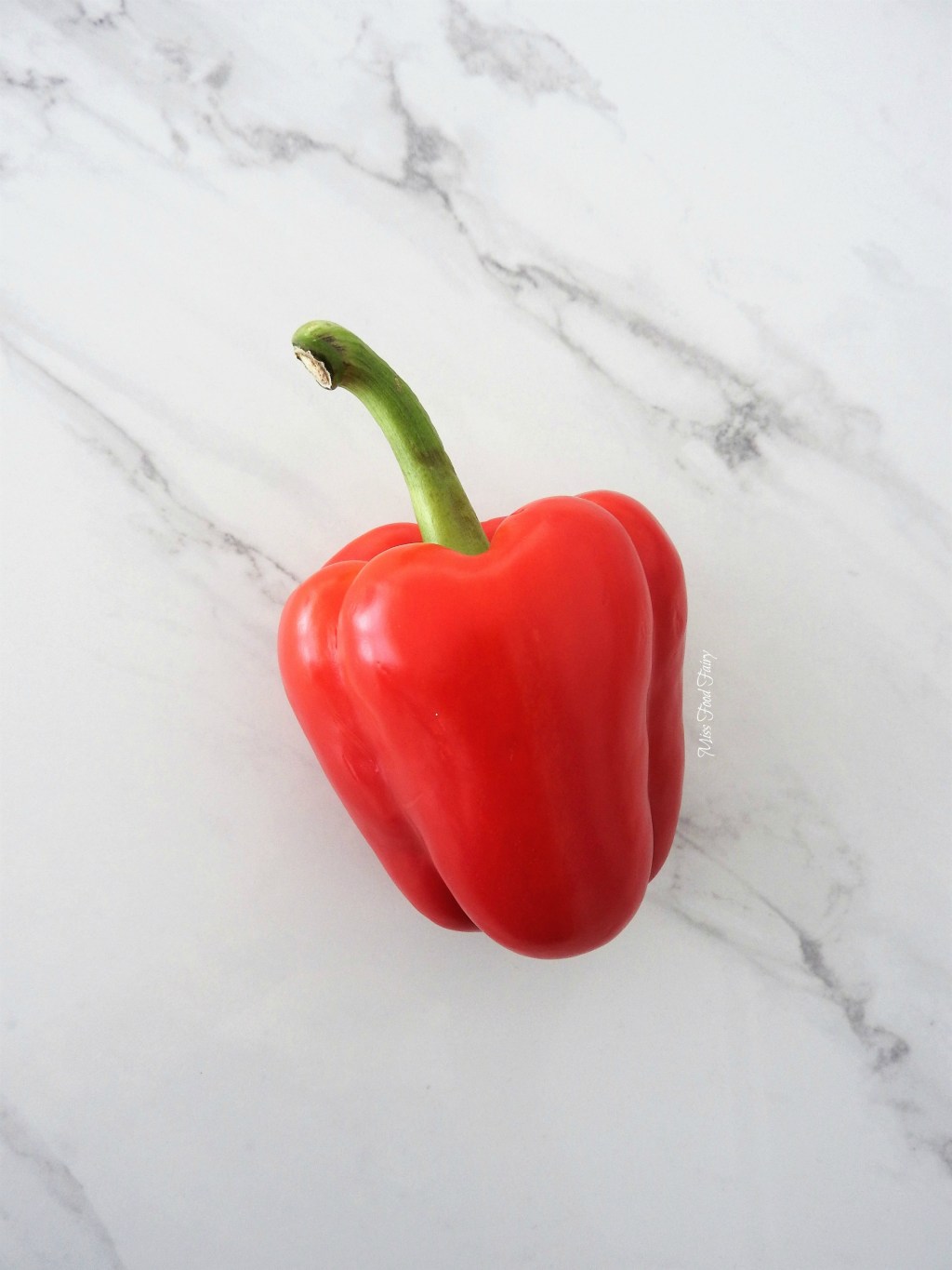 You may be asking about the way you see chefs on TV slicing straight down the cheeks of the capsicum. You’ll find this technique I’ll share with you way easier, it produces the best results and keeps the seeds and stem in one bit.