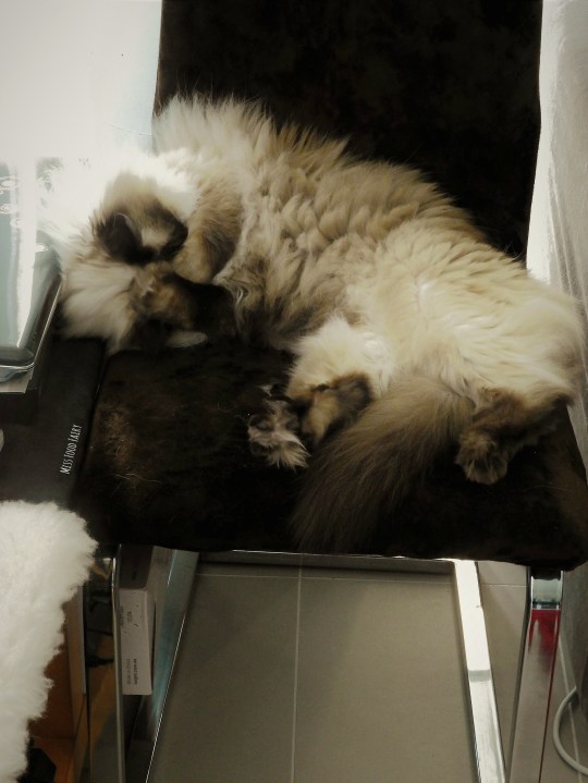 Kojiro is quite at home on the dining chair, which we placed near the TV for people to watch the GP. He made himself at home when everyone left that I decided to leave it there. He often has his afternoon sleep there, if he’s not asleep with me on the couch.