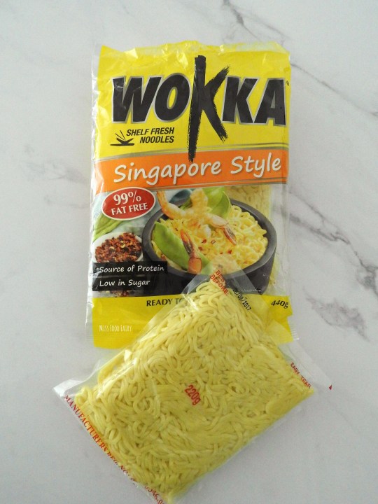Noodles. I usually buy dried rice noodles but I had a craving for spicy noodles one day and there was nowhere close that made take away noodles. So I bought these. They’re just so easy to use. I added them straight into the wok, with the spicy chilli sauce and my craving was satisfied in less than 10 minutes! Perfect!